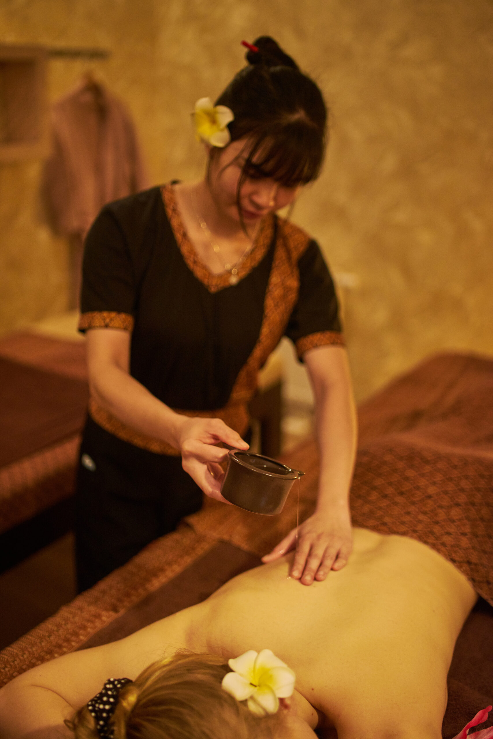 Masaż ajurwedyjski (Ajurweda), oferowany w Asana SPA to jeden z najstarszych i najbardziej popularnych masaży na świecie, mający swoje początki już w starożytności. Ajurweda, to holistyczne podejście do ciała jako całości oraz filozofia życia. Ten niezwykle przyjemny masaż olejowy wprawi Cię w stan głębokiego relaksu i ukojenia. Swoim zakresem obejmuje całe ciało, a masażystka koncentruje się przede wszystkim na stopach, plecach, głowie i przodzie ciała. Do Ajurwedy używamy ciepłych olei ziołowych: m.in.: oleju ze słodkich migdałów, olejku kokosowego, oleju z pestek winogron, które dodatkowo wzbogacamy o naturalne olejki aromaterapeutyczne: lawendowy, neem i jaśminowy. Tak specjalnie skomponowana mieszanka olei i aromatów, działa nie tylko relaksująco, ale przede wszystkim leczniczo. Efektem masażu jest redukcja napięcia mięśni, wprowadzenie w nastrój błogiego relaksu oraz stymulacja punktów witalnych i kanałów energetycznych.